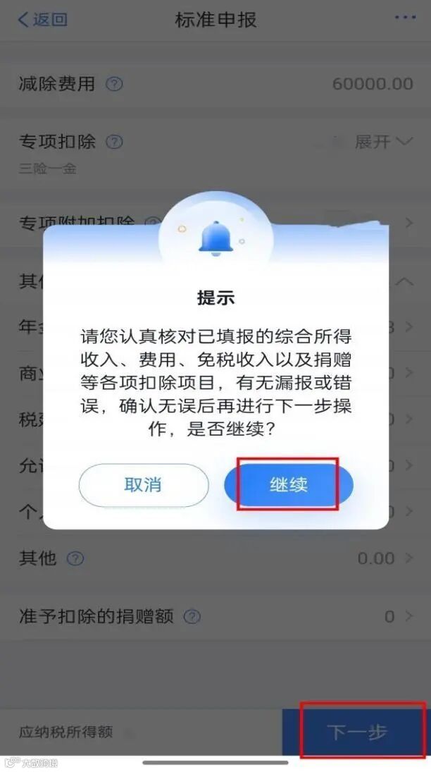 核对无误后,点击【下一步】,请仔细阅读提示内容,点击【继续】。