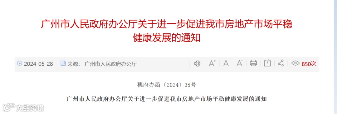 5月28日,广州市人民政府办公厅印发了《关于进一步促进我市房地产市场平稳健康发展的通知》(穗府办函〔2024〕38号,下简称“《通知》”),现解读如下: