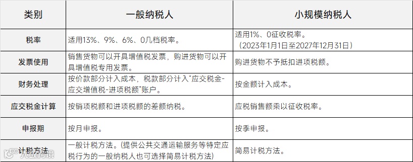 一般纳税人的主要区别