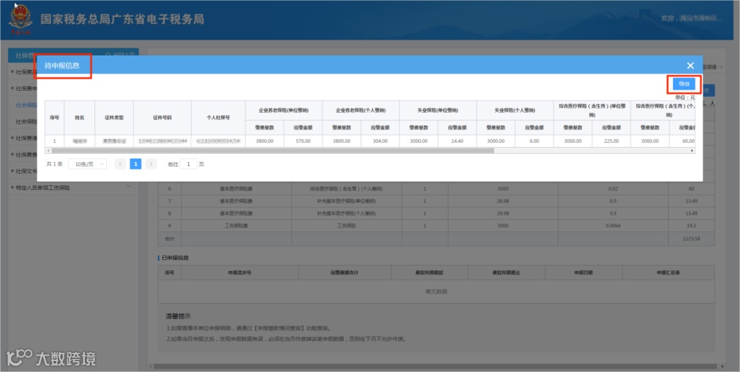 c.点击【预览明细】,弹出“待申报信息”窗口,查看本次申报人员的明细信息;
