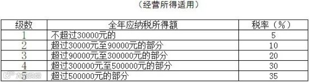经营所得适用百分之五至百分之三十五的超额累进税率。