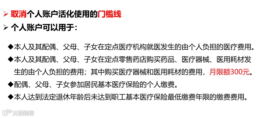本次门诊共济改革,国家统一了个人账户计入办法,在职职工个人账户由个人缴纳的基本医疗保险费计入,计入标准原则上控制在本人参保缴费基数的2%,单位缴纳的基本医疗保险费全部计入统筹基金;退休人员个人账户原则上由统筹基金按定额划入,划入额度逐步调整到统筹地区根据本意见实施改革当年基本养老金平均水平的2%左右。以当地平均养老金5000元计算,划入资金即100元。