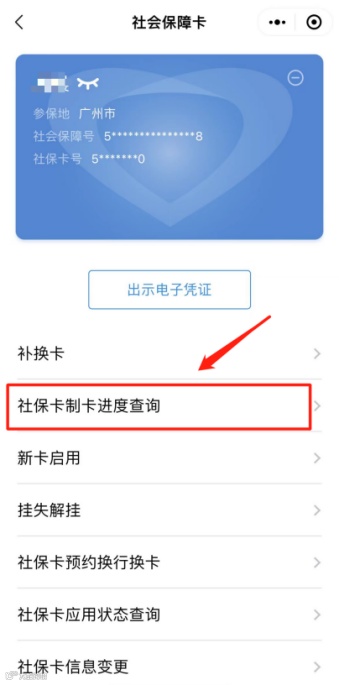 登录“粤省事”微信小程序,在“社保>社保卡>社保卡制卡进度查询”栏目自助查询。