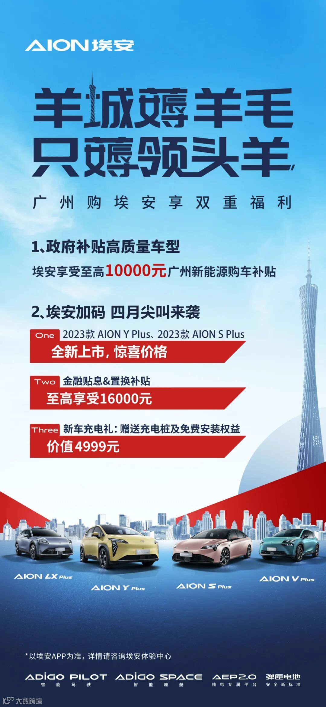 ②购买2023款AION S Plus系列,享至高4000元金融贴息及至高6000元置换补贴,送4999元充电桩及安装权益(3个月);
