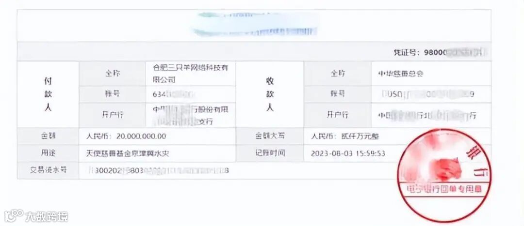 8月3日,抖音著名网红“疯狂小杨哥”所属三只羊网络发文称,向中华慈善总会定向捐赠2000万元用于采购应急物资、灾区救援以及后续受灾地区重建工作,以帮助灾区人民恢复正常生活。