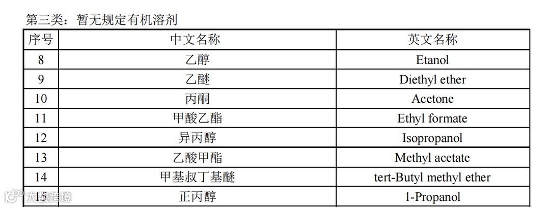 挥发性溶剂的限用情况,数据来源于《化妆品安全技术规范(2015版)》
