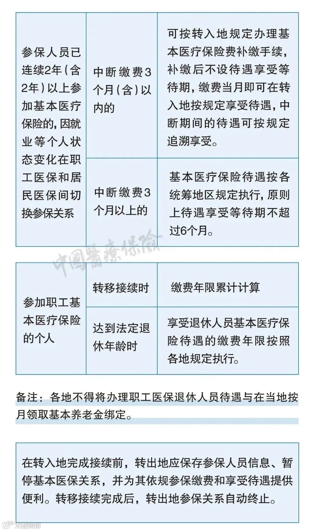 在这个文件中,对医保关系的转移接续,在全国层面上统一了经办流程,规范了待遇衔接。看完这张图,大家就能搞懂医保的转移接续啦~