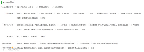 这一部分需要勾选的是原料来源、原料的生产方式及原料复配或混合的原因。那么问题来了,如果原料中只含有结晶水且含量较少的情况下,主成分特征是该选择结构明确的单一化合物还是选择聚合物/混合物呢?若选择了聚合物/混合物,后续的聚合度该如何填写?
