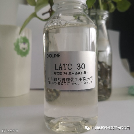 Diocat™ LATC 月桂酰 PG-三甲基氯化铵属于单(直链烷基酯基)季铵盐,是一款温和型阳离子型表面活性剂,具有化学稳定性好、优良渗透、柔软、抗静电及杀菌等特性;对头发柔软度的提升以及抗静电性能显著,常作为护发调理剂改善头发各项性能。作为常用的酯基季铵盐类表面活性剂,本产品具有更好的水溶性,能做到透明产品中。由于该产品具有良好的渗透、柔软皮肤的作用,且温和无刺激,常被应用于各种去角质产品中。
