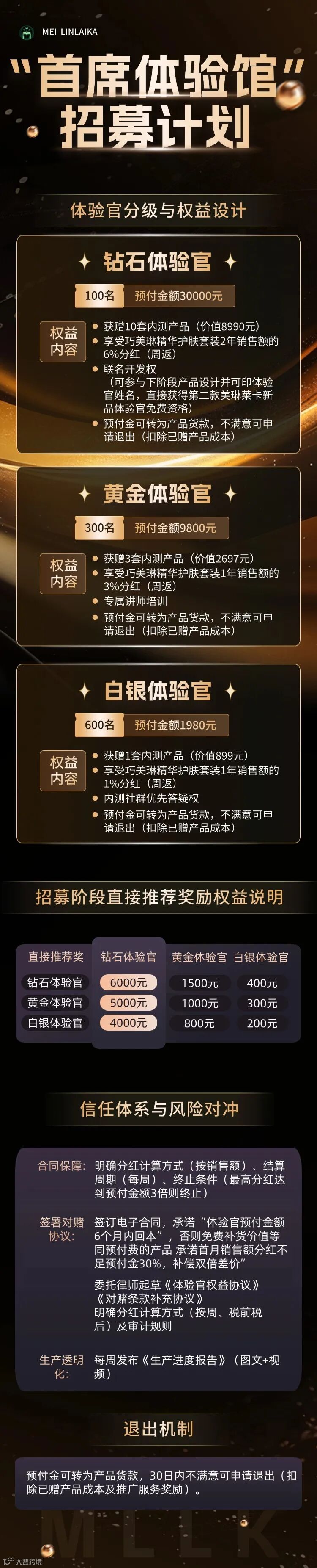 ✅ 利润分红:体验官专属权益——产品销售额的1%-6%不等的直接返还,分享越多,收益越高!