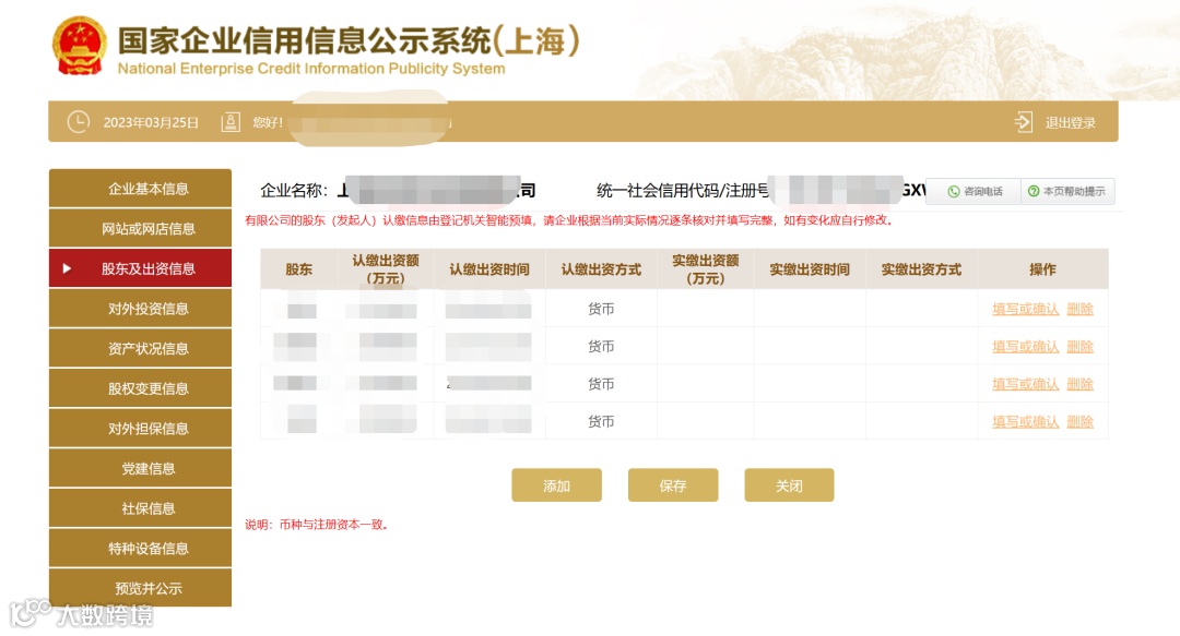 4. 认缴实缴金额的单位为“万元”,保留小数点6位,币种与营业执照注册资本币种一致且无需填写。