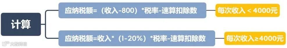 企业需取得合规发票方可税前扣除,目前个人去税局代开发票免增值税;企业每次支付劳务报酬时,应按20%~40%的税率预扣预缴个人所得税,计算方法如下: