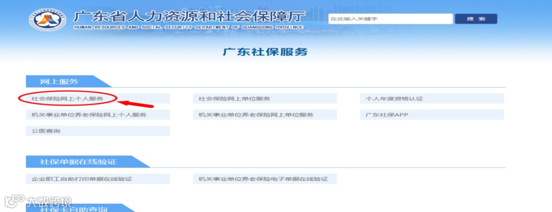 第一步:“广东社保服务”专栏→社会保险网上个人服务