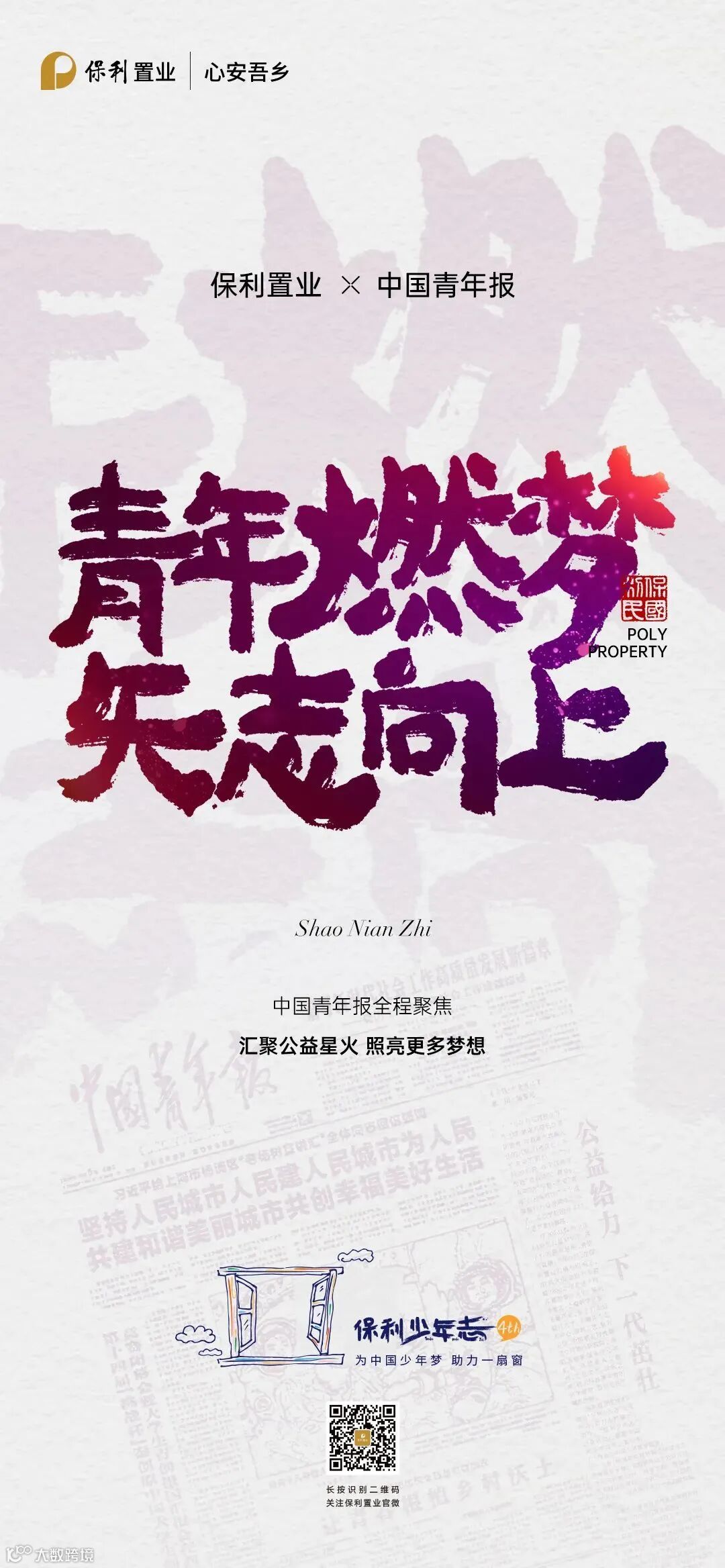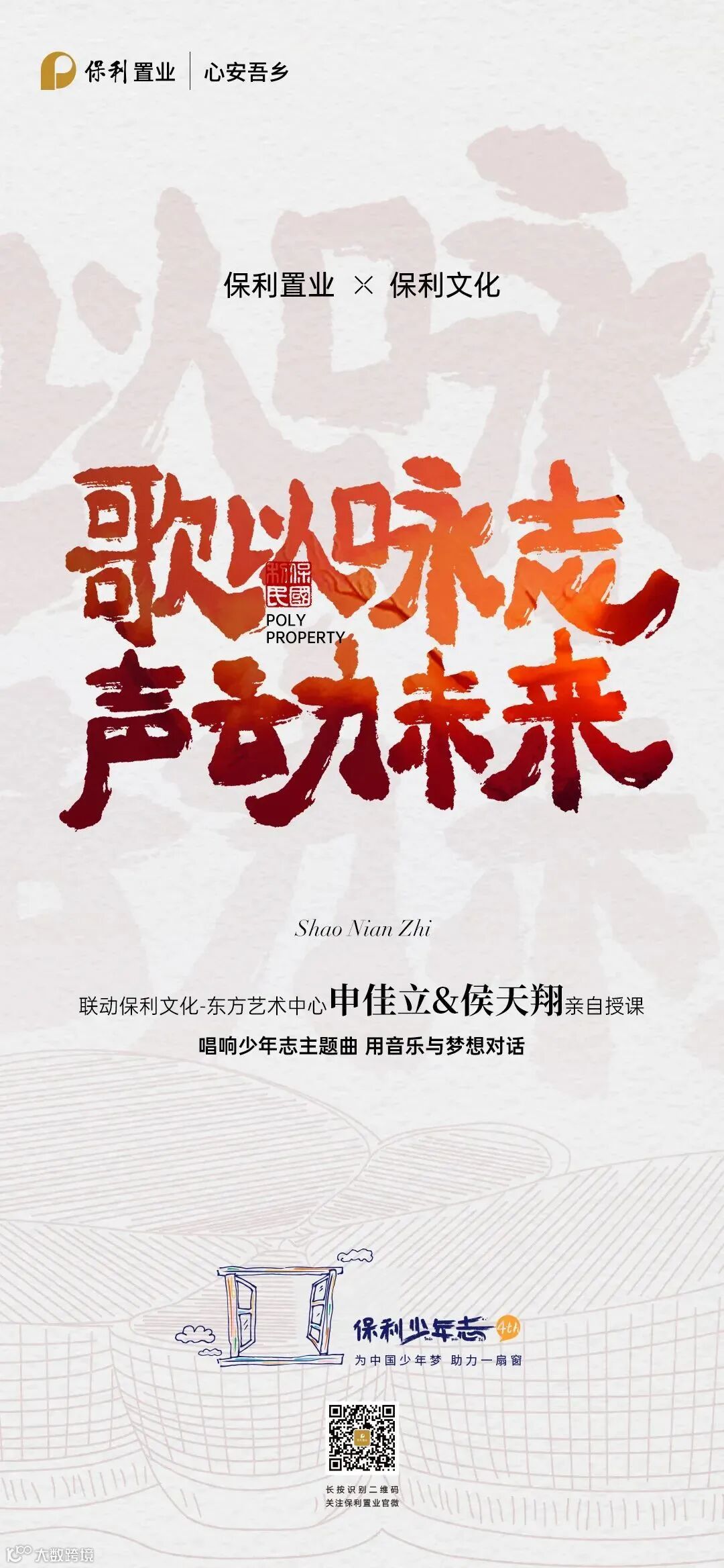 近年来,保利置业不断打造完善“心安吾乡”品牌主张,致力于从产品、服务、文化、责任四大触点传递品牌向善的态度,书写共筑吾乡、共赴美好的初心向往。“保利少年志”是“心安吾乡”品牌主张的重要承载,更是保利置业秉承央企担当,落实党的二十届三中全会关于“解决好人民最关心最直接最现实的利益问题,不断满足人民对美好生活的向往”重要部署的有力举措。