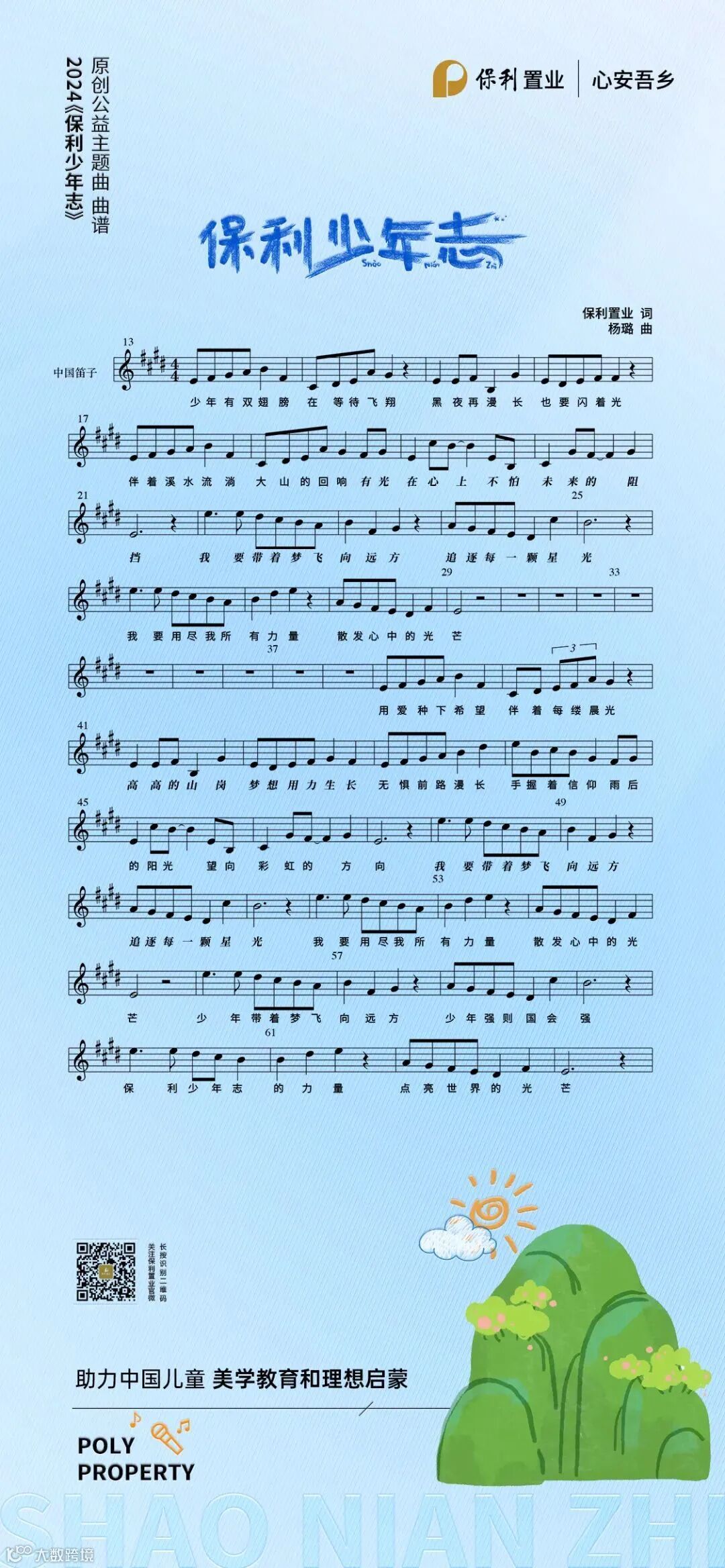 用歌声与理想对话,让梦想星火愈发耀眼。2021年,来自大山的9名少年首次唱响《保利少年志》主题曲,让大山的回响飘扬于首都的天空;2022年,保利少年志“千里课堂”来到广西壮族自治区横州市三榃村委小学,66名大山少年们在稻田里歌唱梦想;2023年,保利少年团在全国30城用歌声与理想对话,让梦想的星火愈发耀眼;2024年,保利置业携手上海东方艺术中心,邀请专业老师悉心指导云南宁蒗山区的少年唱响未来,为孩子们插上梦想的翅膀。