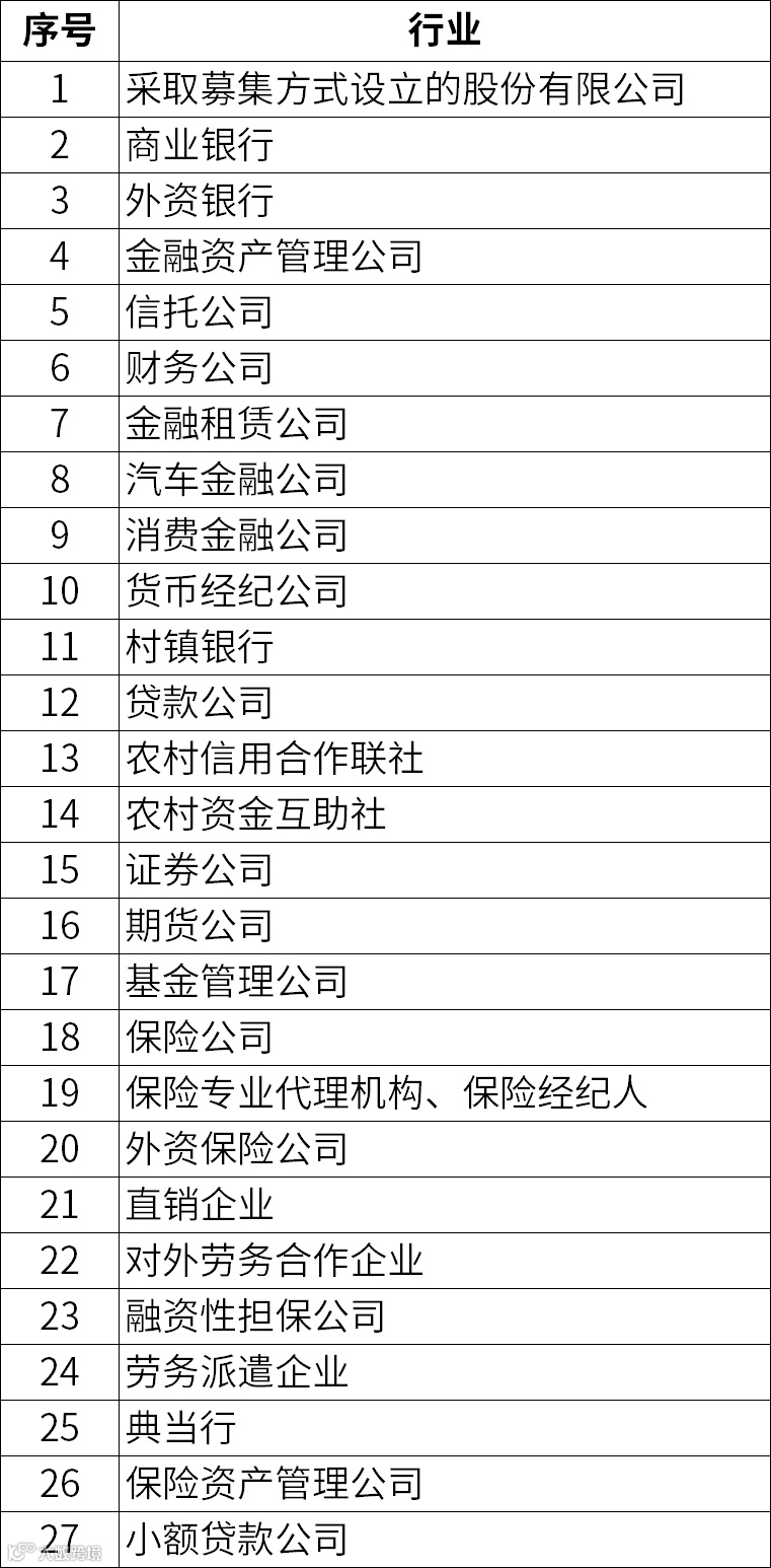 根据《国务院关于印发注册资本登记制度改革方案的通知》(国发〔2014〕7号)规定,以下27个行业目前暂不实行注册资本认缴登记制。