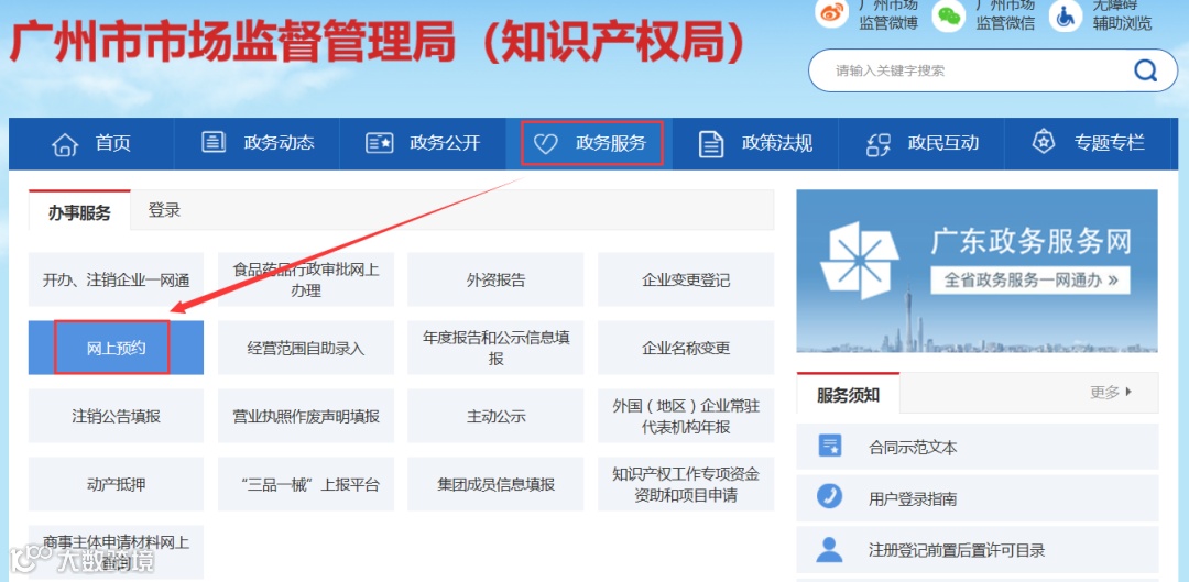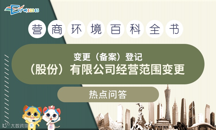 2.窗口办理。涉及经营范围变更,办理前需提前在经营范围自助录入系统录入经营项目,后续预约到您公司的登记机关政务中心的窗口办理,预约路径:广州市市场监督管理局→政务服务→网上预约。