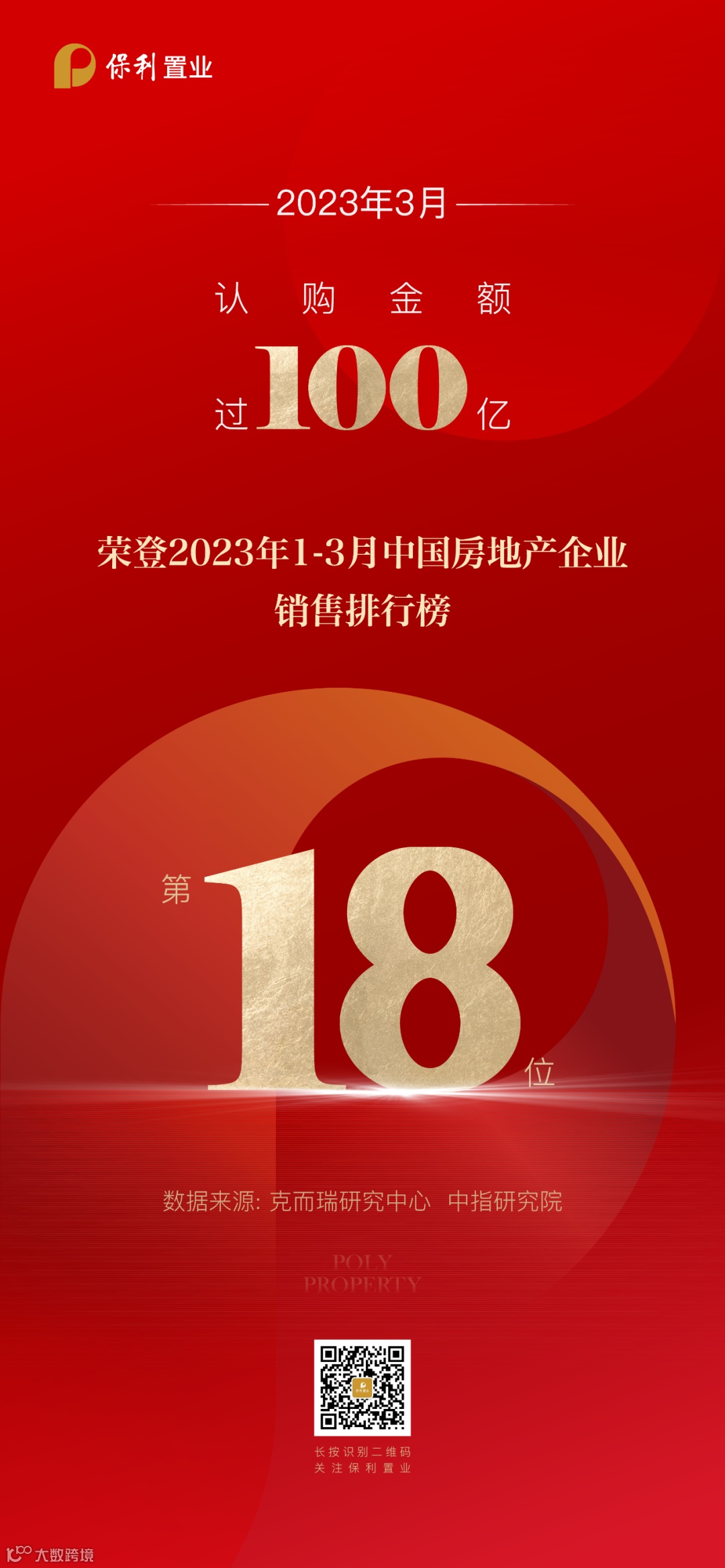 保利置业2023年一季度销售排行榜荣登行业18位