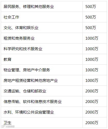 本年度营业收入累计达以下标准的服务业企业法人(或执行企业会计制度的非企业法人):