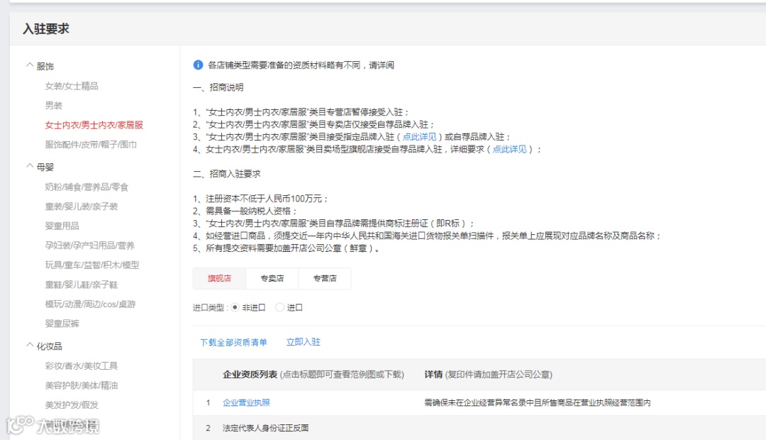 2、大部分行业入驻要求公司成立时间在一年以上;