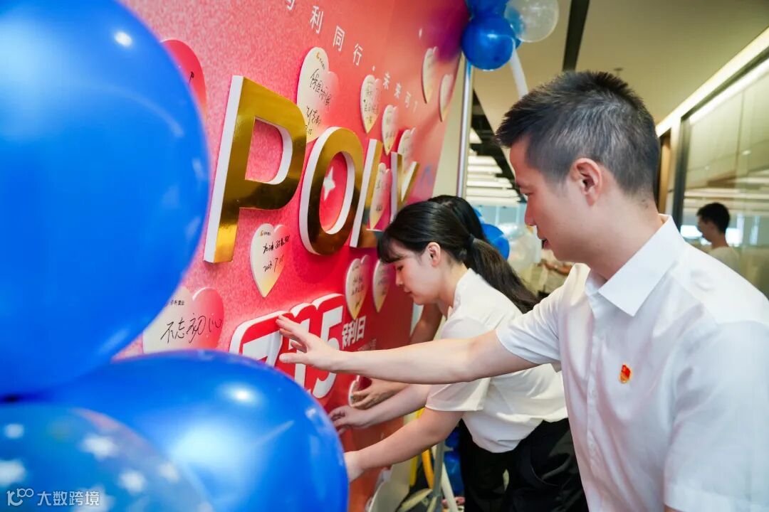 仪式礼毕,深圳公司员工在“创意签到墙”上纷纷留下自己的祝福,以爱心为“砖”,构建起一面充满温暖祝福的文化“墙”。各项目营销团队也在案场挥动国旗、司旗,与公司共庆保利生日,积极呈现保利人的风采。同日下午,公司平台还举办了员工集体生日会,进一步增强员工的企业归属感,同频共祝“一个保利,万象美好”。