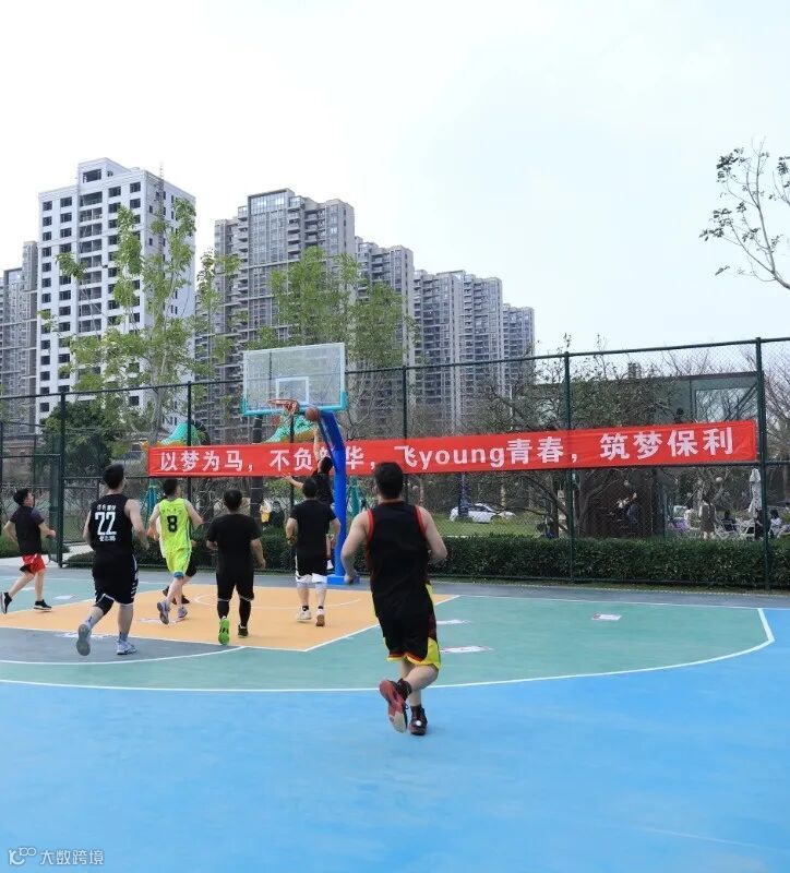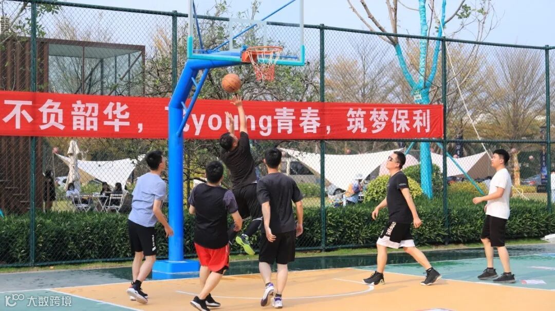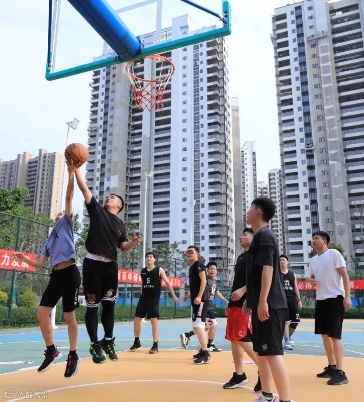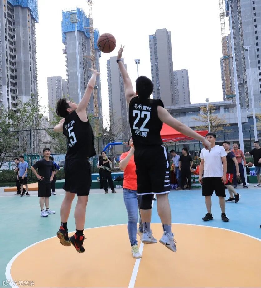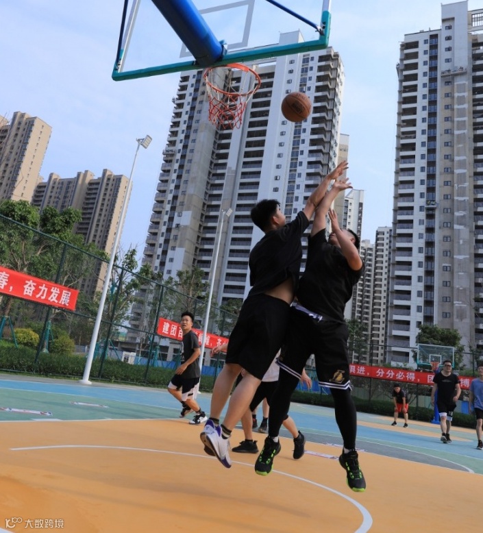 保利鹿江来项目旁建设有两个标准篮球场,深圳公司篮球队组织全体球员汇聚球场,火热开赛。