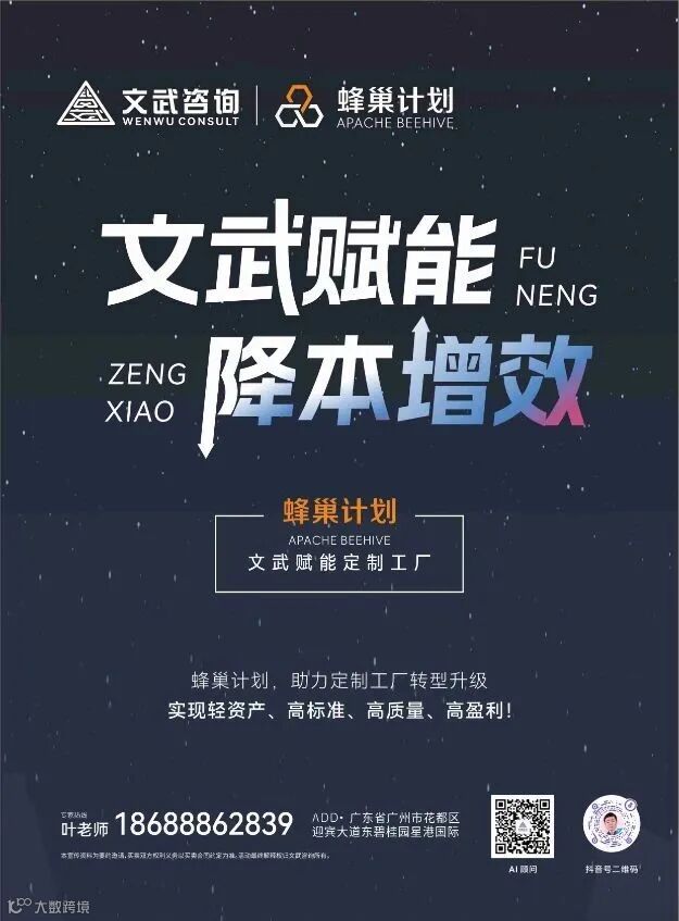 您是否在寻求定制工厂转型升级的解决方案?是否希望实现轻资产、高标准、高质量、高盈利的运营模式?文武咨询推出的“蜂巢计划”正是为您量身定制的全方位赋能方案!