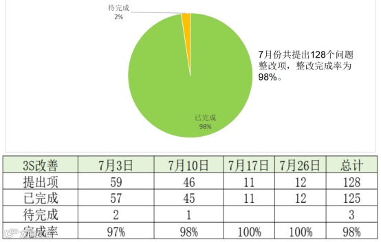 通过检查输出问题整改任务,在整个项目落地过程中,从上到下行动迅速,项目整改达成率为98%。