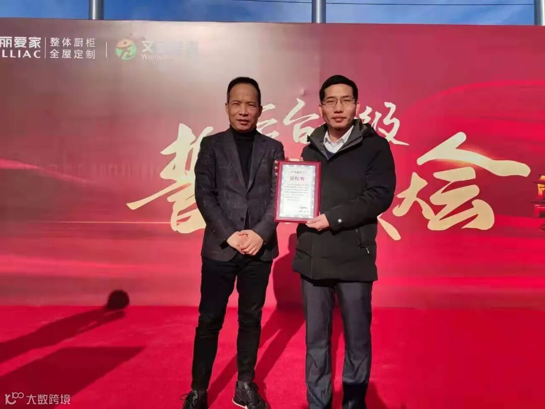 (佰丽爱家董事长刘总向文武项目组蔡老师颁发授权书)