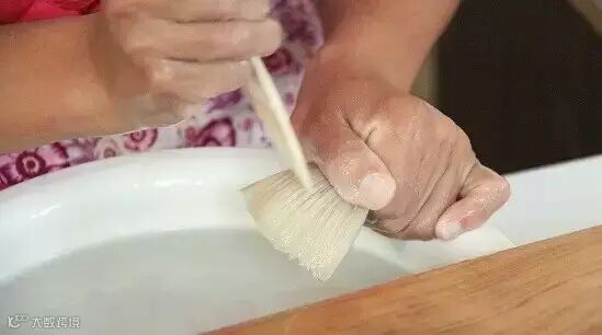 一支毛笔从原料进口到出厂,一般需要经过择料、水盆、结头、装套、蒲墩、镶嵌、择笔、刻字等十二道大工序,制作工艺须一丝不苟,而且只能依靠纯手工生产。其中以水盆最为繁琐细致,也最为关键。制笔人在严寒冬日,一盆热水,从热到温到凉到冰,手依旧还要在水里泡着,手泡到发白,肿胀,开裂,疼痛不已。