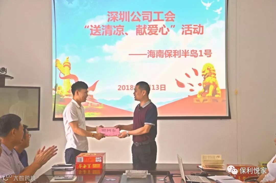 了解到这一情况后,深圳公司领导高度重视,工会迅速行动,号召深圳公司全体员工献爱心,并在短短十天时间里就筹措到一笔善款。6月13日,由公司工会副主席代表公司赴海南,亲手将善款交予洪贵华同志,并鼓励他坚定信心,勇敢面对病魔,战胜困难。