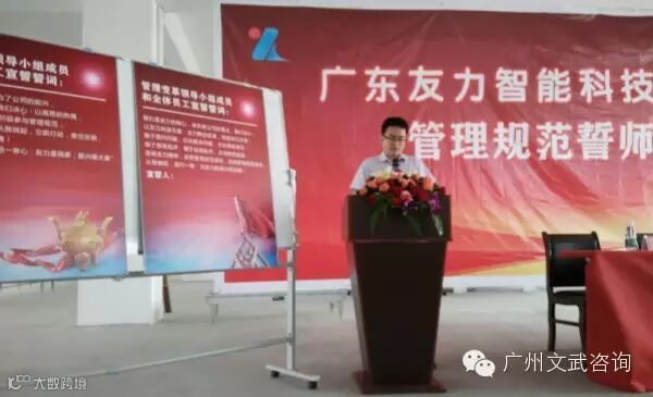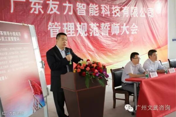 接着,文武咨询叶老师进行了发言,对友力智能的管理规范表示出了强大的信心,叶老师深入浅出的演讲和高昂的激情激起了现场一波又一波的热浪,给友力智能公司全体员工打了一支管理规范的定心针,博得了全场的热烈鼓掌。