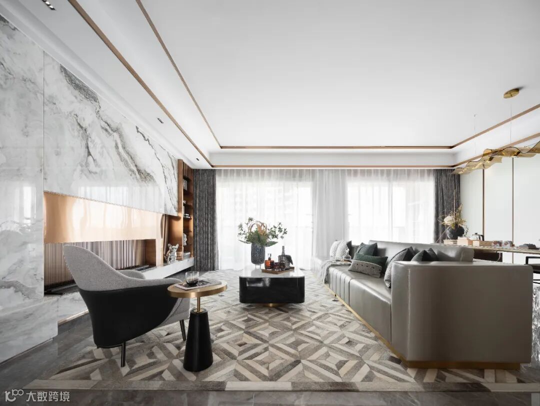 对于精英人士而言,客厅不仅仅充作日常家人间交流的空间,更是与朋友或是生意伙伴往来的重要场所。保利和光尘樾约60㎡豪华边厅设计,是资源型豪宅中的终极形态,无疑完美契合精英人士的需求。
