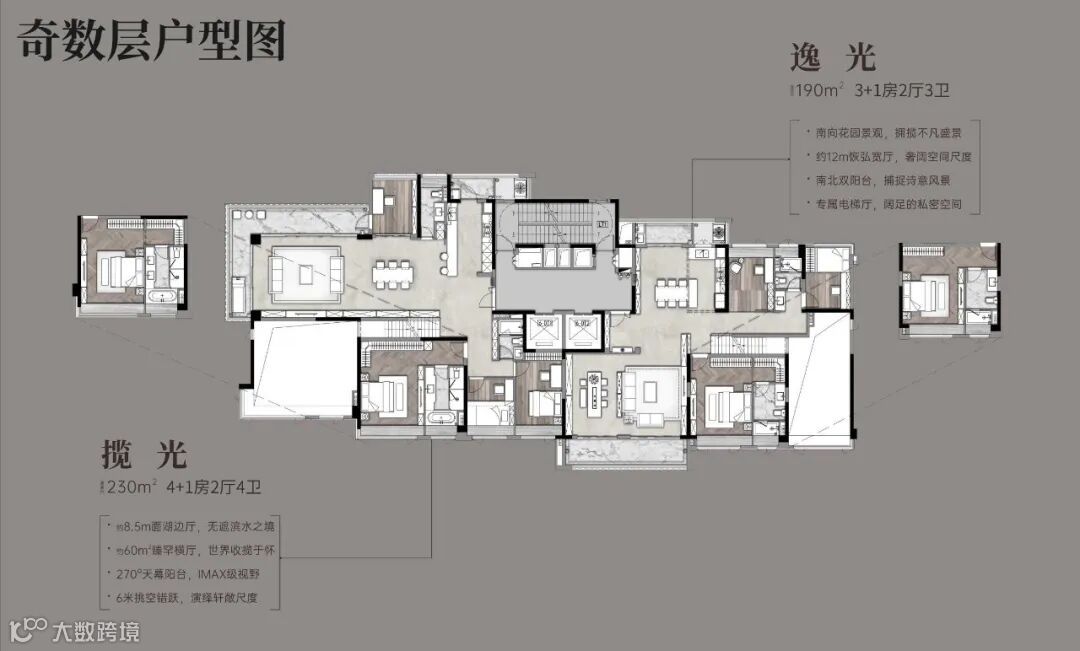 建面约190-230㎡奢阔跃层新品,如何甩市场一条街?看一张户型图就知道:
