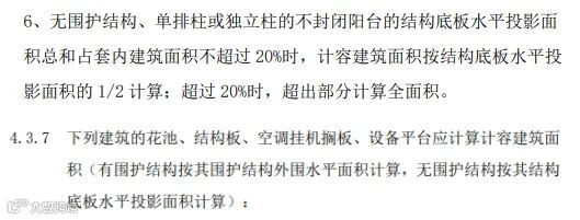值得一提的是,根据《中山市国土空间规划技术标准与准则(2023版)》规定,对不封闭阳台结构底板水平投影面积总和作出限制,超出20%时,超出部分计算面积。另外新规中还提到,将结构板、设备平台、空调挂机搁板等纳入计容面积。