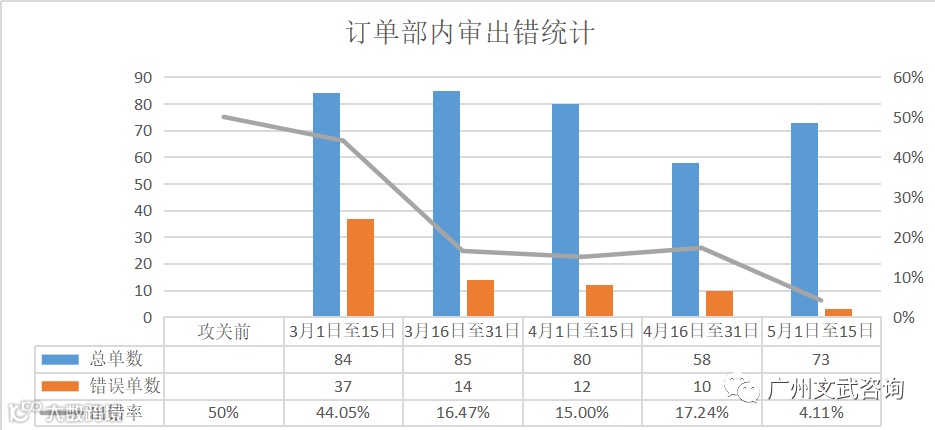 改善措施实行后,森纳智装拆单内审出错率下降明显,提高了工作效率,更好的配合各部门完成生产工作。