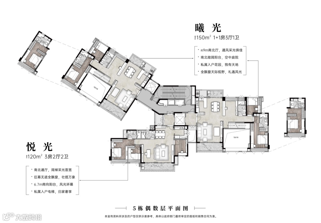 ①建面约120㎡王牌户型,独享6.7米南向巨幕阳台。