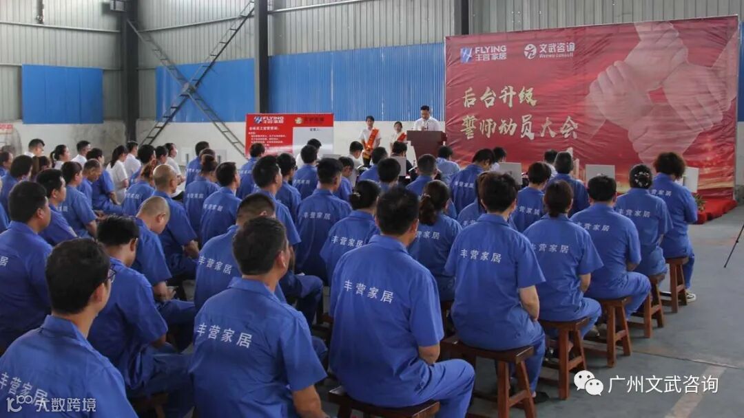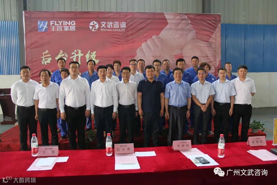 2020年7月13日,河南丰营家居有限公司(以下简称“丰营家居”)与广州文武企业管理咨询有限公司(以下简称“文武咨询”)在丰营家居工厂联合召开后台升级誓师大会。丰营家居副总经理吕合勇先生、丰营家居副总经理王霁先生、丰营家居营销总经理贺岗旗先生及丰营家居全体员工;文武咨询总经理叶老师、驻丰营家居项目组组长蔡老师及项目专员潘老师出席本次会议。