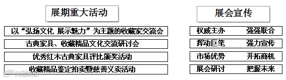 注:红木古典家具展区企业(单位)组委会可根据企业(单位)订购展台数量或面积大小,将享受不同层次的优惠政策。(详细资料备索)