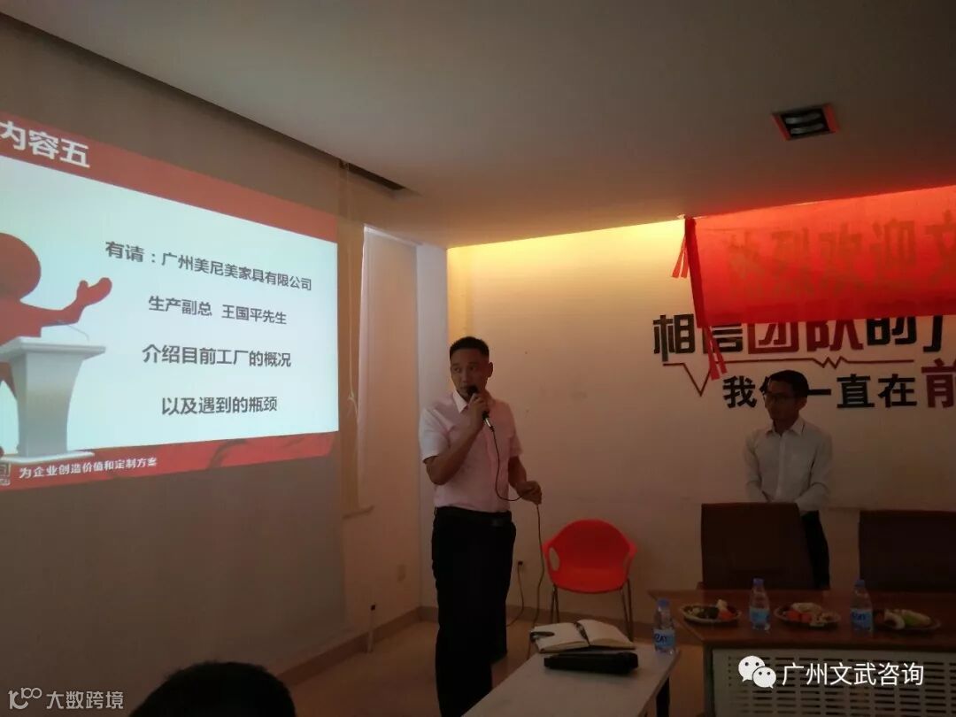 广州美尼美家具有限公司生产副总王国平先生介绍工厂概况及瓶颈