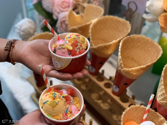 当天池内漂浮的独角兽、彩虹、披萨游泳圈