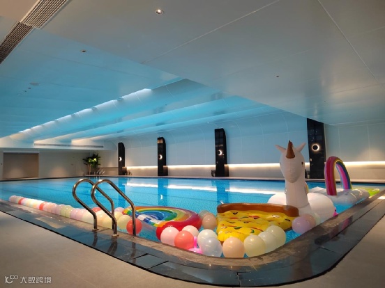 ,会所室内恒温游泳池,采用恒温装置以及水循环处理技术,水温常年保持在24℃-28℃之间,碧水清风,让你尽情撒欢。另外,人性化的设计也可让大人小孩畅游更安全方便。