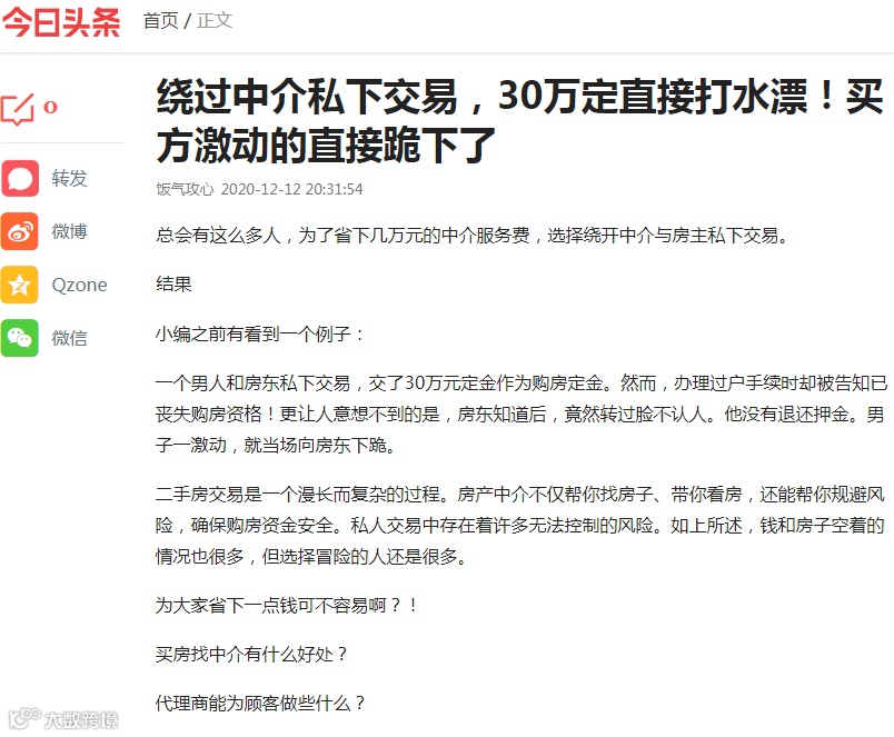 绕开中介直接交易,惨痛教训多