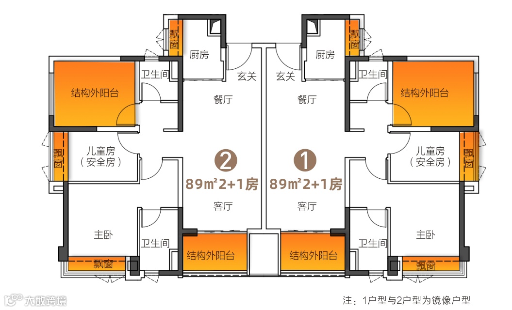 而通过结构外阳台,以及“凸”飘窗的设计,户型拓展性大大增高,空间灵活百变。