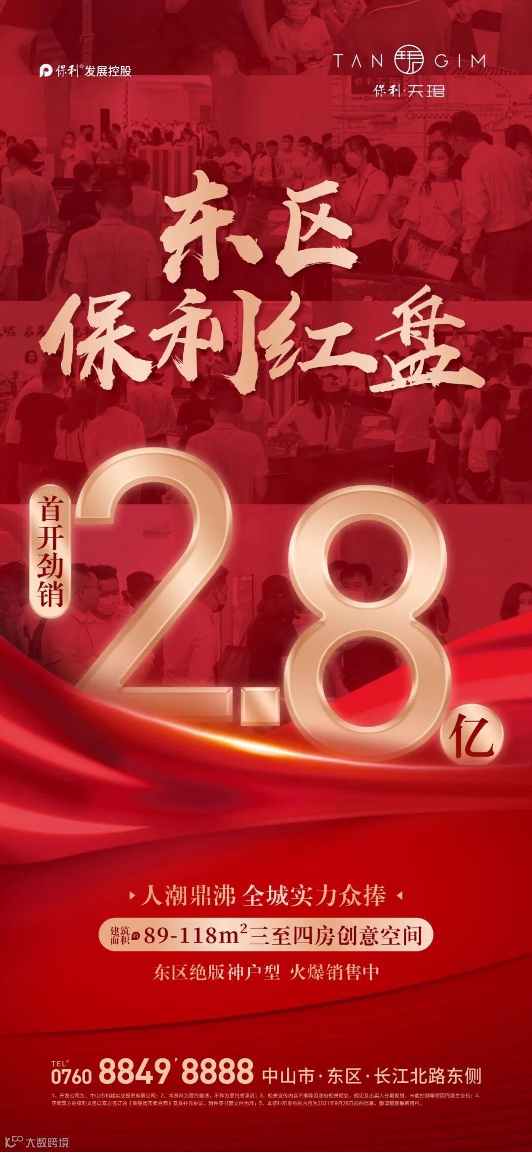 9月27日晚,岐江新城东区总部保利天珺首开,400多组客户到场抢房,狂揽2.8亿!