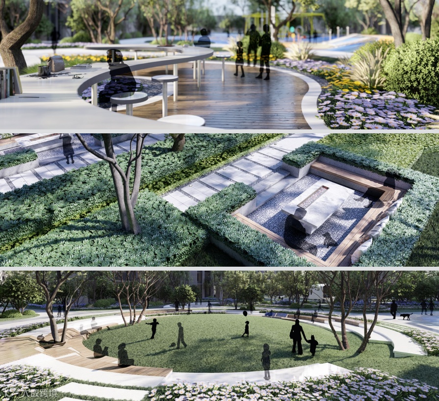 例如园林的打造,打破边界,空间共融,可以让所有业主跨越年龄,让孩子实现润浸式教育。