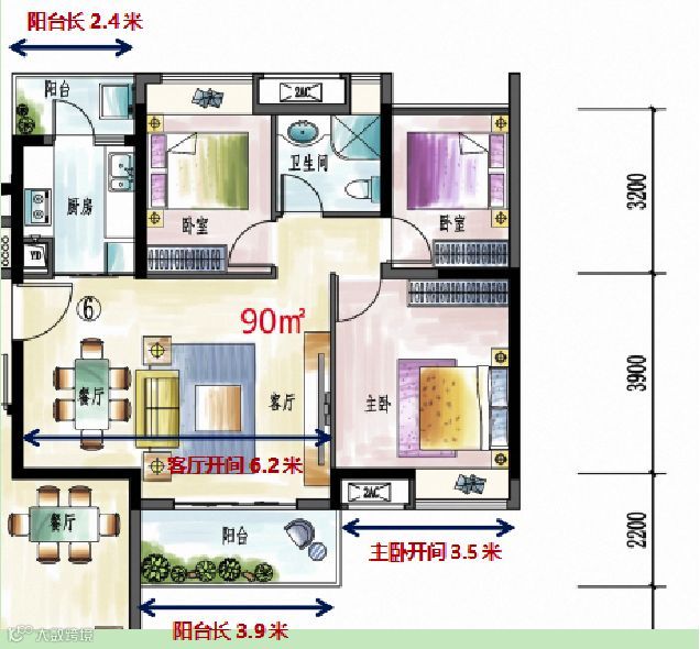 28栋05/06单位—90㎡三房两厅一卫