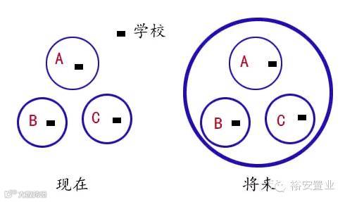 如果说A片区是重点学区,B区和C区是普通学区,那么A区的房价肯定是比B与C区的房价高出很多,但按照教育部未来的规划就是将A、B与C区统一划作一个片区,A区居民的孩子也不一定能上A区的学校,B区与C区的学生也有可能上A区的学校,那么A区的房子就不具有优势了,而B区与C区的房价则会因为这个因素而升温。