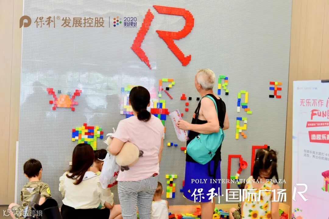 3、乐高积木墙!在墙前用身体比出“R”字母,拍照打卡;乐高拼装互动摊位,积木花样玩。