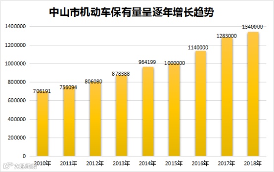 从供需关系角度来看据中山交警部门数据,截至2019年6月,中山机动车保有量超过146万辆,机动车驾驶人超过155万人,按照每月1.3万辆的增长速度,中山很快成为广州、深圳东莞之后进入200万汽车城的广东城市。目前,中山常住人口约为350万人,也就是说在中山不到3人,就有一个人有汽车。